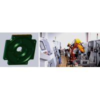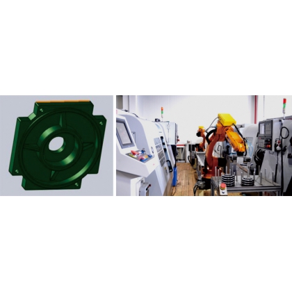 電機后端蓋生產(chǎn)線采用2臺機器人實現(xiàn)雙工位加工,雙夾手實現(xiàn)上下料一體,不占用機床加工時間,充分提高加工效率;